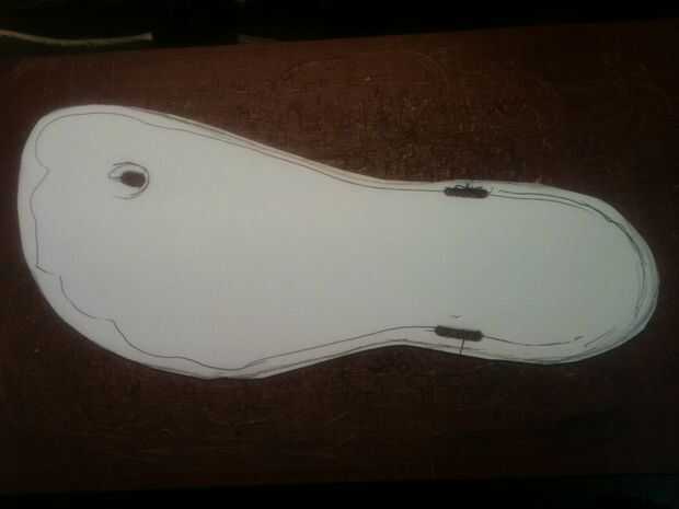 Hacer un agujero en la marca de su dedo gordo del pie y perforar las ranuras de las marcas de los talones.