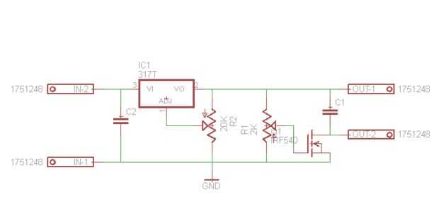 Es un esquema de un controlador simple. LM317T controla el voltaje de salida, mientras que el IRF540 establece la carga actual.