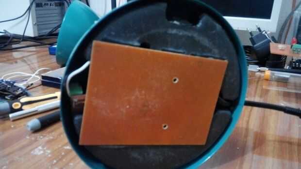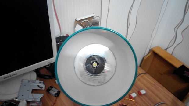 Para evitar que el LED que despide alrededor he decidido montar en un mini-CD dañado. También sirve como un buen reflector (véase el cuadro arriba).