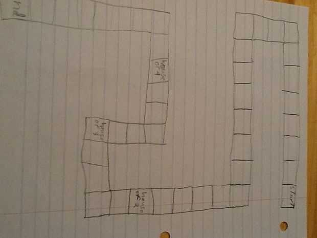 Comenzar dibujando un trazado de cuadrados marca el inicio y el final. A continuación en seis diferentes plazas escribir casa 1, casa de 2,3,4,5 y 6. Próximo sorteo power-ups en algunas plazas como guardar tres palos, impulsar la dirección 4 y reversa (explicaciones en cómo jugar). Para hacer los palillos corte cartón delgado en 6 tiras y en el color de un lado en o dibujar líneas.