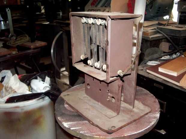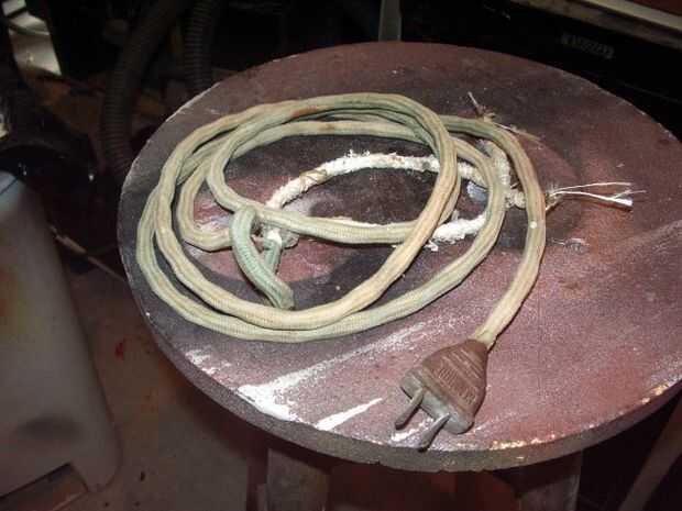 Fue fácil llegar a las interioridades de este calentador. Todo lo que tenía que hacer era quitar cuatro tornillos cerca de la base y uno en la parte superior trasera de la unidad y salió de la base con los interiores de la une. Las bobinas de calor fueron Unidas a la base con cuatro remaches. Puesto que necesitaría la base, taladró los cuatro remaches, lanzados el aparato viejo con las bobinas y el cable y mantuvo la base.