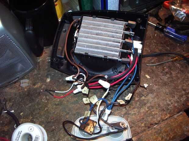 Descarta la parte delantera de la carcasa del calentador de cerámica, pero decidió mantener la espalda, ya que todos los componentes principales (ventilador, elementos de cerámica, etc.) fueron Unidos a él (3ª foto), y esto me mantendría de tener que idear un medio para volver a montar todas las piezas. Yo finalmente había recortado el exceso de plástico en la parte superior de esta vivienda, ya que conseguiría en mi camino en los controles del calentador del montaje.