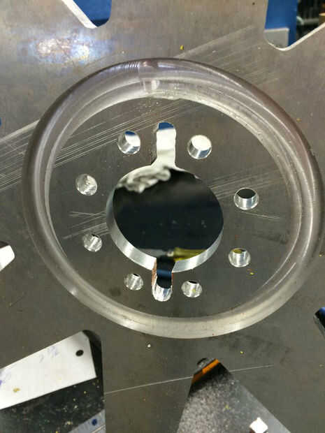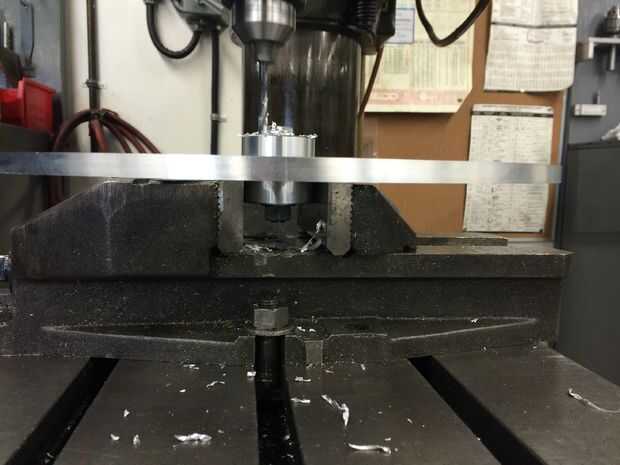 La próxima cosa a considerar fue cómo el axel iba a permanecer inmóvil dentro de los cubos. Entonces una idea vino a la mente. Dos pernos que se sentarían en las ranuras que se sujeta a cada lado para asegurar el eje de la soldadura permanece inmóvil. Primer paso fue cortar las ranuras. Similar a un diseño de zapato de caballo, perforarse un orificio sería luego dos cortes de alivio se haría para capturar el diámetro externo del agujero para crear la forma de zapato de caballo.