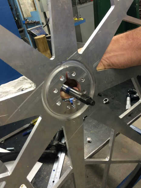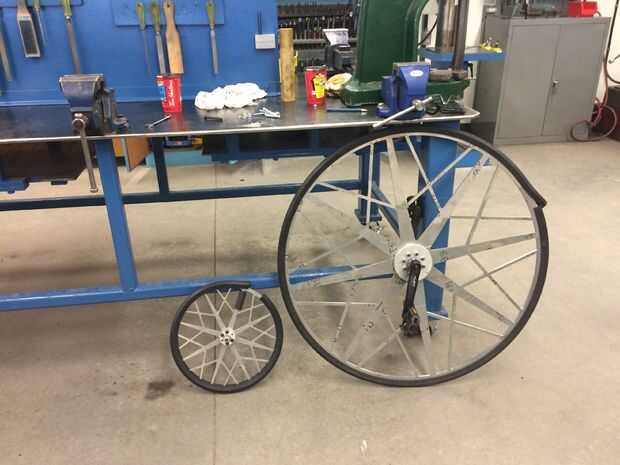 El mismo proceso fue luego aplicado a los tapacubos pequeño pero difieren en tamaño. Por suerte, las piezas de la bicicleta donada entraron en gran uso durante este proceso. De la rueda grande, con unos pocos ajustes del axel que albergaba a los pedales en la bicicleta donada fue utilizado como el eje de la rueda de XL. La teoría detrás de este diseño era que los rodamientos se sientan directamente en el eje, por lo tanto necesita ser dado vuelta a la medida para un ajuste sedoso.
