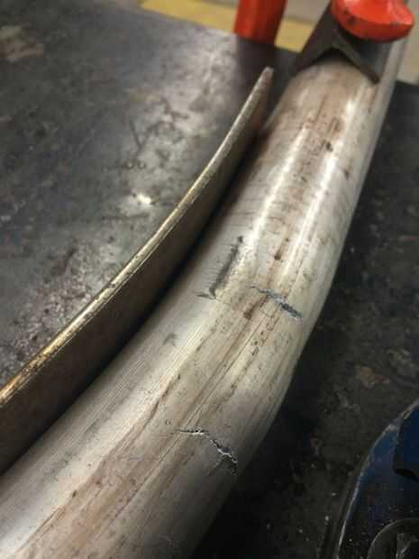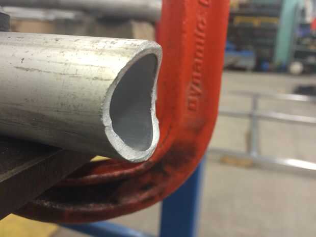Ahora aquí viene la diversión parte, la flexión del cuerpo. En cuanto a configuración, abrazaderas tipo C fueron utilizado para fijar tanto el interior de la tubería a la mesa, así como el exterior de la tubería a la mesa. Para evitar que la tubería ruede, un trozo de hierro de ángulo fue afianzado con abrazadera en la parte superior del material.