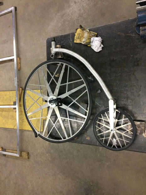 Después de que el diseño de la horquilla fue completado, fue tiempo para fijarlas al cuerpo. Antes les de la soldadura al cuerpo, las piezas necesarias para ser alineados y a nivel que no era demasiado difícil de lograr debido a las constantes mediciones durante todo el proceso. Para mantener las piezas perfectamente espaciadas para acomodar la rueda, corte un pedazo pequeño de material sobrante de las horquillas al tamaño y lugar perpendicular entre las dos piezas.