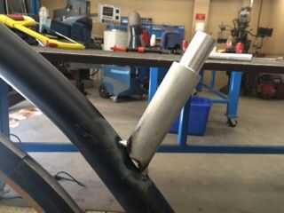 El eje se corta a un ángulo de 60° que acomodaría el arco del cuerpo, así como la distancia de piernas a los pedales. Para fijar el eje en el cuerpo, se utilizó soldadura proceso MIG.