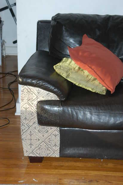 Desde ello, mis gatos han intentado no rayar las esquinas recién cubiertas. Se puede ver en las imágenes que hay todavía arañazos y pequeños agujeros cerca de donde lo cubrió. Pero, sólo quería reparar las zonas más afectadas - el resto no son tan malos! Me gusta cómo resultó - puedo mantener el sofá un poco más y se ve genial!