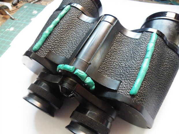 Niños pequeños tienden a usar mitones de lanudos, que no son tan buenos para binoculares de enfoque, y un poco resbaladiza, así que utilicé un poco de la siempre popular Sugru modificar los prismáticos y hacerlos fáciles de utilizar.