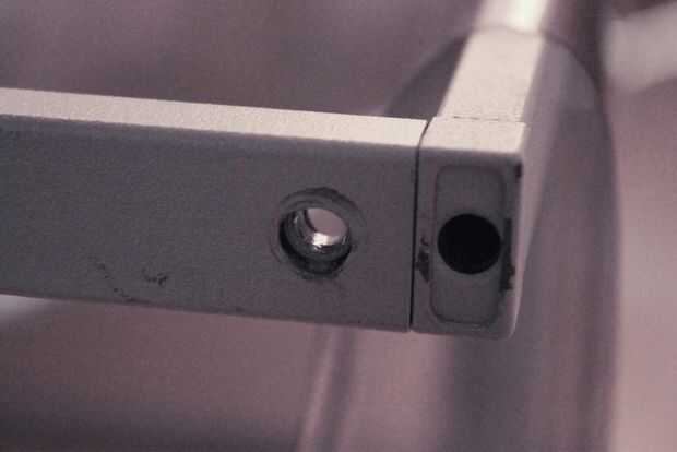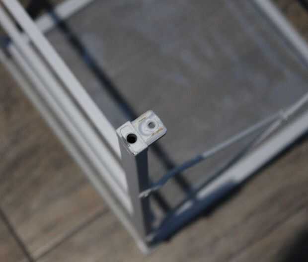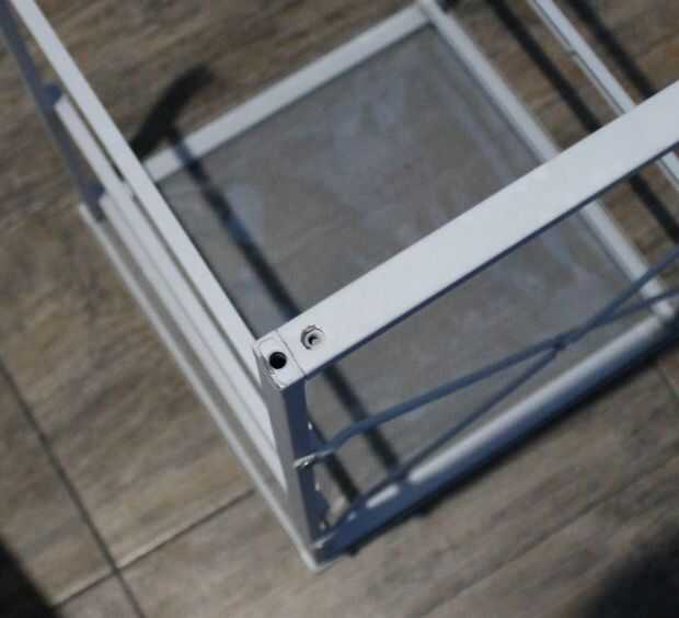 Si Ud. no encuentra el tornillo de derecha longitud no necesitas hacer nada a los cajones en la parte inferior. Sólo aflojar los tornillos que sujetan la malla metálica. Puede dejar la malla o llevarlo hacia fuera dependiendo de si llega sus tornillos. Alternativamente si solo pudiera encontrar tornillos muy largos, podría perforar todo el camino a través de los lados superiores de los cajones de la parte inferior y mantener todo con una tuerca.