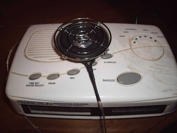 Una vez que sabes que su despertador funciona te puede hacer una parrilla de protección para el altavoz. Hice mía de una cubierta de ventilador de ordenador, pero también se podría utilizar algún paño de alambre de malla o hardware.