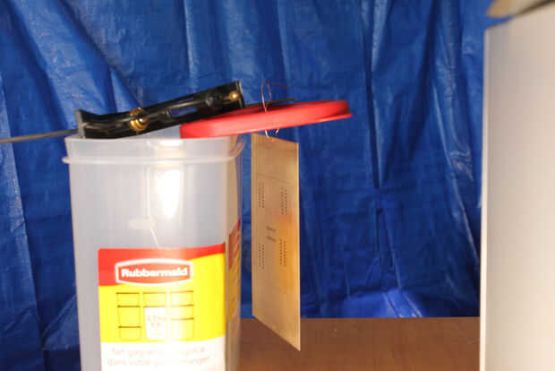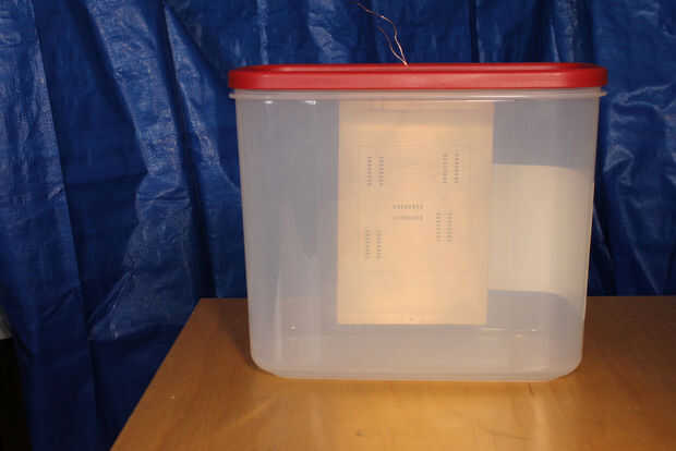 11 - fijar el toner a la placa con vapor de acetona. Se puede suspender la PCB de uno de los agujeros en un vaso de boca ancha cubierta o envase de polipropileno con una pequeña cantidad de acetona en la parte inferior. Dejarlo en el vapor durante 2 minutos o menos, luego déjelo completamente de aire seco.