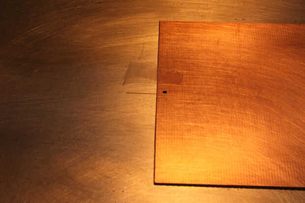 15 - suspender la placa de vapor de acetona para fijar el toner al cobre en ambos lados. Esta vez lo deje en el vapor durante 15 minutos. Déjelo secar al aire unos minutos.