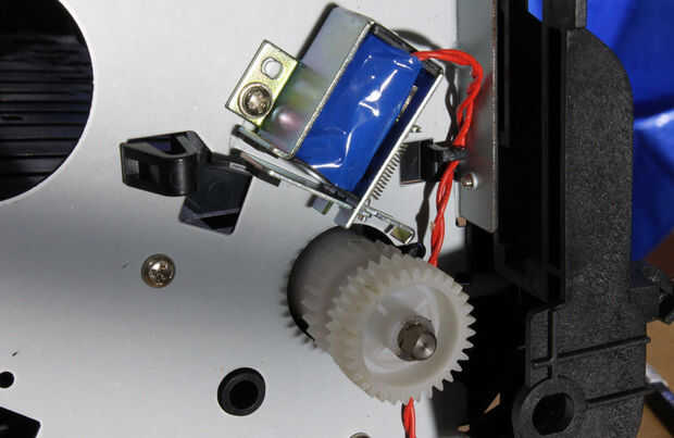 Retire el solenoide de embrague de alimentación Manual. Es la cosa azul junto al embrague. Corte los cables y retire el solenoide quitando los dos tornillos... Puede descartar, también, pero tenga el conector y los cables.