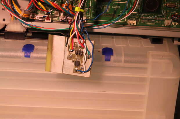 Yo he montado el tablero controlador MCU en el interior de la puerta de acceso de la cubierta de lado derecho porque quería tener fácil acceso en caso de necesite reprogramar el MCU. Para hacer esto tuve que añadir extensiones a varios de los cables a la Junta Directiva, en particular los de los NPIS y cubrir un interruptor abierto. Si usted no importa dónde está la Junta, las extensiones no son necesarias y sólo puede cubrir la junta con cinta aislante y dejarlo sentarse en cualquier lugar en el compartimiento de control.