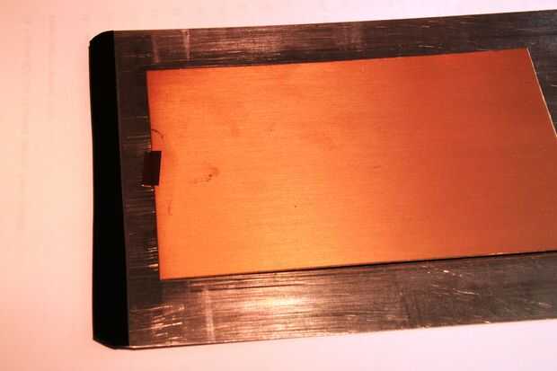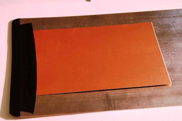 Colocar el PCB centrado de izquierda a derecha en el portador y cerca de 1 pulgada desde el borde de ataque. Ponga un trozo de la cinta de cobre de la hoja en el borde de la placa, conectar la PCB para el portador. Luego coloque un pedazo de cinta ancha eléctrica.75 pulgadas sobre el borde del PCB, cubriendo la cinta de cobre y asegurando la pcb para el portador. Ligeramente Limpie la superficie de la pcb con un Scotch Brite u otra tecla, luego limpie la placa con acetona y deje que se seque [fotos]. Ahora estamos listos para imprimir!