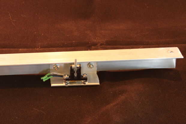 Cortar un trozo de ángulo de 1x1x.062 8.875 pulgadas. Taladre dos agujeros de.125 pulgadas centrados en una pierna del ángulo,.375 pulgadas desde el borde y 1,5 pulgadas aparte. Estos agujeros se aparean a los agujeros de montaje en el soporte de PIS. Cuando atornillar estas dos partes junto con hardware de 4-40 debe encontrar que el PIS gira suavemente, limpiar el borde superior del soporte principal. Usted puede abrir los agujeros un poco si usted necesita un margen de ajuste. Perfore un.172 agujero (11/64) como se muestra en el lado derecho de esta pierna, 1,5 pulgadas desde el extremo y.5 pulgadas desde el borde. Esto se utiliza para sujetar un cable de tierra [fotos].