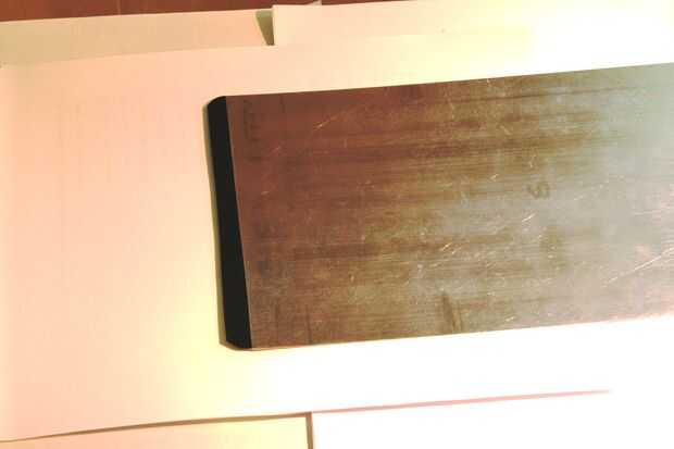 Antes de utilizar la impresora, el Sensor de salida debe ser ajustada a la altura correcta. Hacer un portador de 6 x 12 de corte 12' pedazo de la pulgada 6 ancha x.016 hoja de aluminio de espesor, biselado de 4 esquinas y limar todos los bordes lisos. Coloque un trozo de cinta aislante de vinilo sobre el borde de ataque del portador, plegable sea la mitad en cada lado del transportador. Corte la cinta en las esquinas biseladas. Esto protege el tambor de la impresora de conseguir cortada como el portador entra en [fotos].