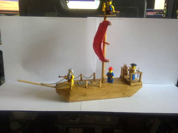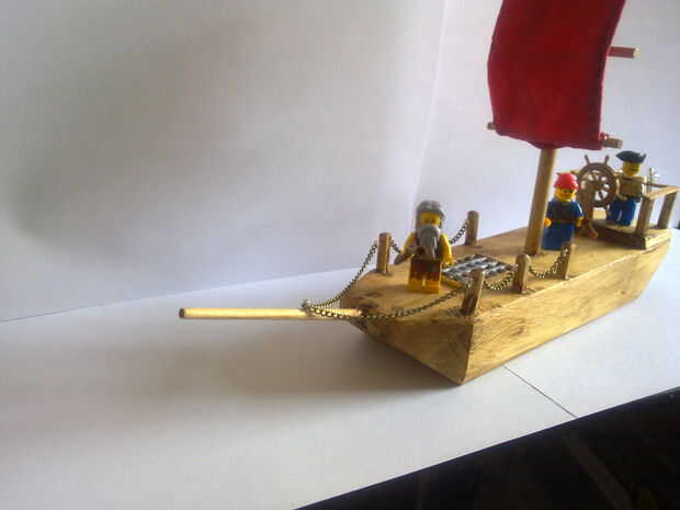 Además, se perforaron agujeros en la barandilla detrás de la rueda de naves para espadas y armas