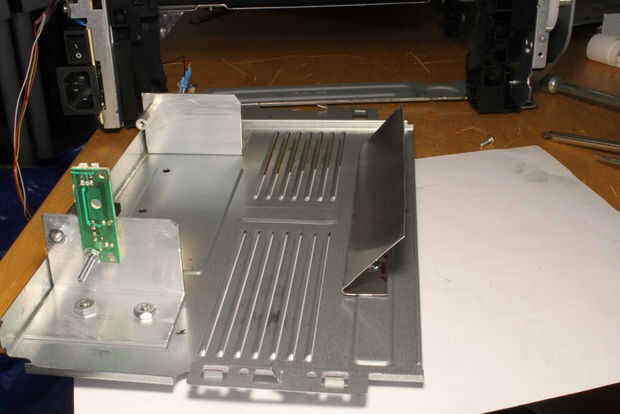 El portador posterior guía (RCG) redirige el portador pasa a través de la impresora y guía a través de una abertura en lo que solía ser la parte superior de la impresora. Se hace de un pedazo largo de 2,5 pulgadas de la pulgada 6 ancho x.020 hoja gruesa de aluminio que utilizamos para el portador.
