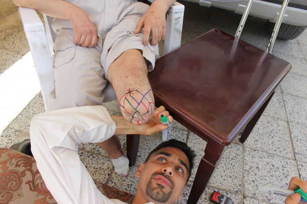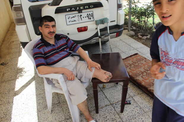 Mientras que en Irak en abril pasado me encontré con mi primo Zaid. Zaid's un chico impresionante con una familia increíble con un horrible problema. Él es diabético. Normalmente sería demasiado un motivo de preocupación en Occidente. Pero en Irak y especialmente durante el año 13 sanciones fue incapaz de conseguir un tratamiento adecuado. Una de las consecuencias de no tener coche apropiada para un diabético es la atrofia de sus extremidades. Ha ido perdiendo dedos de los pies y ahora ha perdido la parte inferior la mitad de su pierna izquierda.