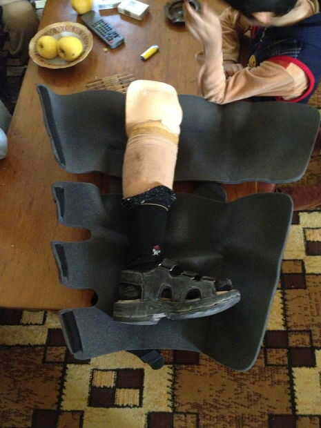 La idea era que si podríamos atar el apoyo suficiente alrededor de la prótesis, la barra de metal que pasa por el refuerzo ayudaría a distribuir el peso a la parte superior de la rodillera atada a su muslo. Prototipo de este proyecto la última vez que estuve allí con Muytaba de la hackerspce iraquí Fikra espacioque pude. No saque todo el dolor desde el punto de presión en su pierna, pero lo ayuda. Parece que la adición de un cuerpo más natural en forma de punto de inserción ayudaría a aliviar parte del dolor. Me gustaría ser capaz de perforar la prótesis en la ortesis de pierna pero no quería dañar a 1.200$ protésico, aunque que no funciona bien.