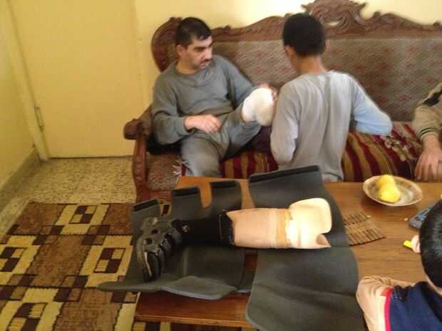 Zaid fue experimentando dolor en el punto de inserción de su prótesis. Y aunque inicialmente pensé que haciendo un mejor montaje 3d impreso prótesis ayudaría, unos meses después que vino de Irak conocí a Joel Sadler en un hackathon aquí en San Francisco. Él ha ayudado a diseñar una articulación de rodilla de 20$ y otras cosas impresionantes en Stanford. Después de describir el problema de Zaid que sugirió que un exoesqueleto que distribuye el peso de la inserción de prótesis punto al resto de la pierna sería una mejor solución. Volví a los Estados y la próxima vez que regresé a Bagdad trajo una rodillera conmigo.