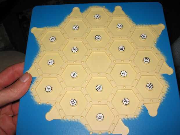 Coloque el diámetro 5/16, 1/32-inch gruesos imanes en el tablero, de manera que cubren los números en la parte de abajo de cada hexagonal. Los imanes en la parte inferior les sostenga en su lugar. ** Es importante que coloque los imanes primero o de lo contrario usted podría terminar con los adhesivos entre el panel y el imán en lugar de en la parte superior el imán **