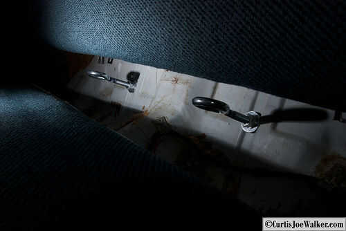 Una vez que la profundidad de set, subir debajo del coche para colocar las restantes tuercas y arandelas en el extremo opuesto de la armella. Seguro que para poner el corte la arandela en el primero, seguida de la arandela y la tuerca.