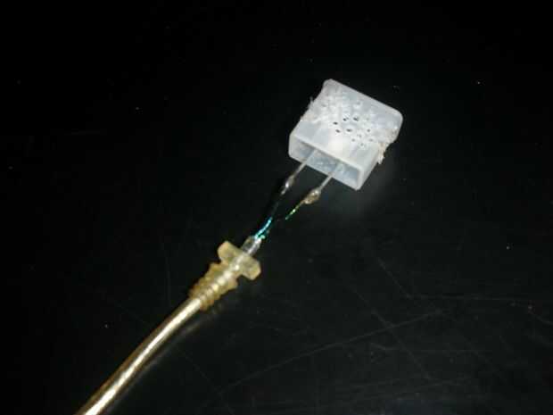 -pegamento caliente la tapa en el cable, teniendo cuidado de que no cola cubre el elemento sensor (las tiras de metal en un lado del sensor) y deje que el pegamento fresco/endurecer.