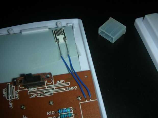 -dentro de la carcasa del medidor, pasar el cable nuevo para que pueda salir al lado del cable de la sonda de temperatura, agrandando el orificio existente en el cárter con un cuchillo.