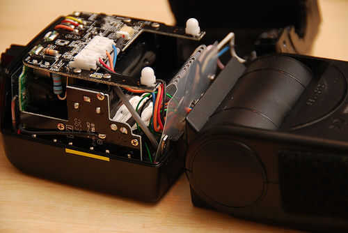 4. prueba de la rotación de la cabeza flash apretando el botón y girar suavemente. Esto se verifique si el sobre de plástico es ensuciar la rotación.