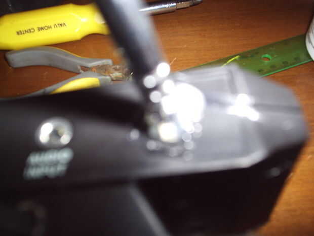 - Poner la antena el orificio y conecte la antena interna a él. Su antena rescatado probablemente tendrá un tornillo en el extremo de él. Este tornillo permite un cable para conectarse a él. En mi caso he podido hacer un lazo con la antena interna y use el tornillo para conectar a la antena externa.