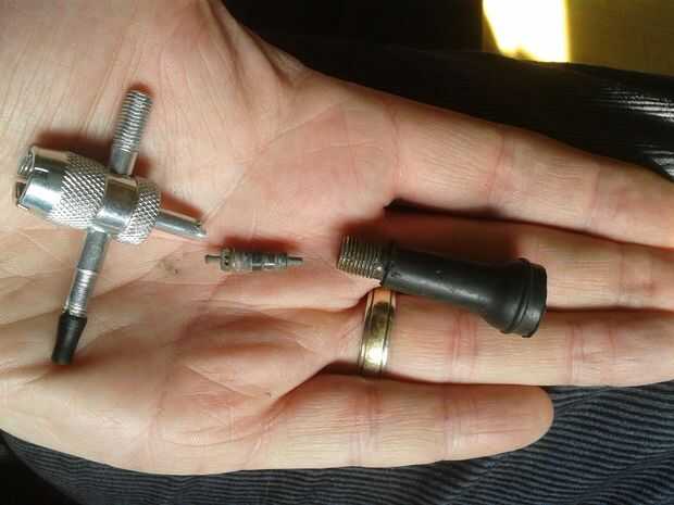 Use el extractor de núcleo de válvula o en su defecto que fino alicates de punta.