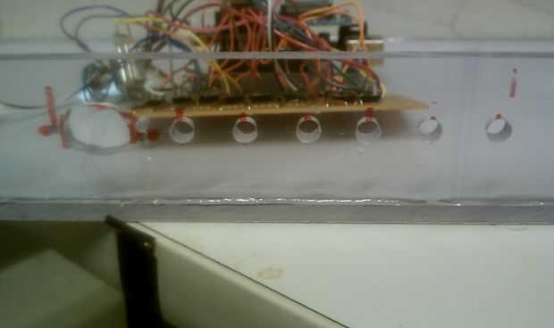 Proceda a perforar los agujeros en la parte delantera de la caja de la bandeja de regazo para que los conectores se pueden colocar dentro de estos espacios. Sin duda, para taladro de tal manera que es lógico y fácil de conectar. Además, perfore un agujero para que puede Agregar un interruptor de palanca en.