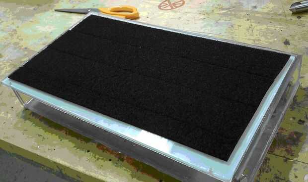 Rollos de Velcro y colocarlo sobre la tapa superior. Capa de tiras de Velcro que se minimice cualquier espacio en blanco que puedan existir entre las tiras. También, evite colocar Velcro sobre los orificios. La capa final de Velcro en la tapa superior debe asemejarse a lo que se ve en la foto.