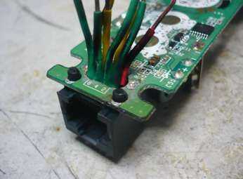 Conectar un puerto Ethernet en la placa de circuito con los cables que salen por el orificio hacia la parte superior de la placa de circuito. Asegúrese de poner en el 8P8C en la parte inferior de la placa de circuito.