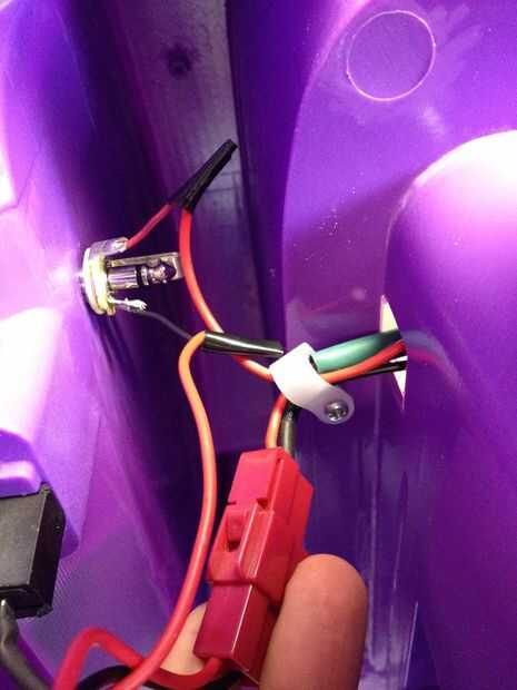 A continuación, usted necesita mirar debajo del coche y encontrar el cable rojo que viene desde el poste positivo de la batería. Este es el cable se corte para instalar la llave en el circuito. Seguir ese hilo rojo hacia la parte posterior del coche y corte el cable en dos pedazos. La parte del cable que viene directamente de la batería debe conectarse al cable rojo de la pieza hembra del gato. La otra parte del cable debe conectarse al cable negro de la pieza hembra del gato. Simplemente puede torcer cada par de cables juntos y o envolver con cinta aislante o encerrar con calor (usted puede también soldar los cables entre sí después de torcer para hacer una conexión más permanente) de la tubería del encogimiento. Se refieren a la segunda imagen arriba para cómo debe buscar.