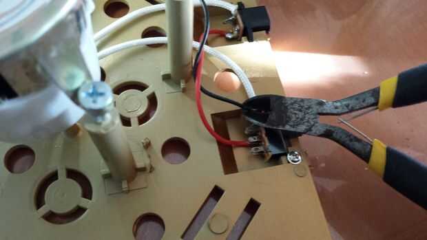 Cortar lo más cerca del interruptor y conector de alimentación de CA como sea posible sin cortar cualquiera de los otros cables. Si usted comete un error aquí deberás romper un soldador para arreglarlo. Si no quieres hacer la soldadura, asegúrese de que usted corte los cables correctos. Mira dos veces, corte una vez!