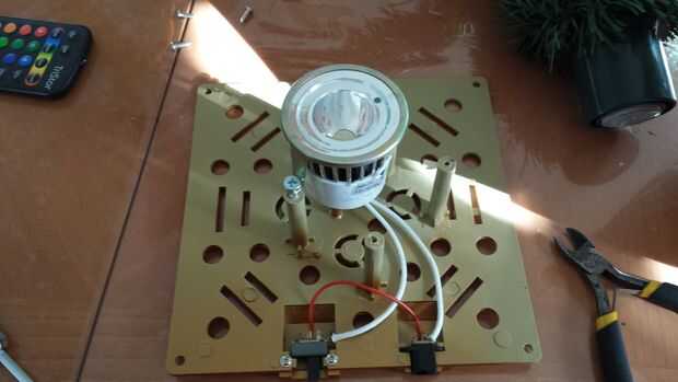 ¿Aviso sobre la faz de mi bombilla RGB, el punto oscuro pequeño en 2:00? Es la entrada óptica para el control remoto - el sensor de infrarrojos.