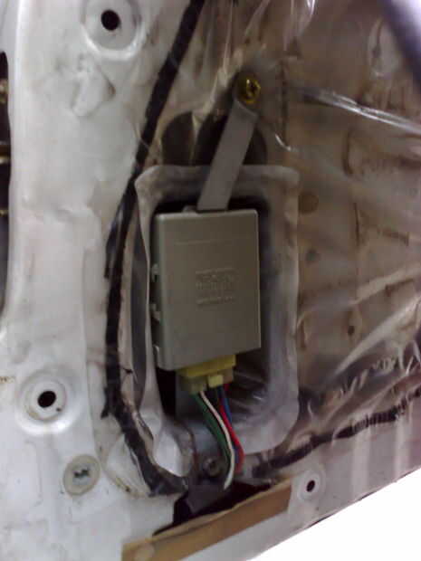 Ahora, he conseguido llegar al relé sin eliminar completamente el panel de la puerta. Esto es enteramente bajo su propia discreción. Dando a la parte inferior del panel de la puerta un remolcador poco encuentro resistencia se soltará los clips, cuidadosos de no dañar a cualquiera! El relé de sí mismo se lleva a cabo en por dos pernos de tornillo, marcados "Perno de relé 1" y "relé tornillo 2". Me pareció más fácil de usar el cubo de 10mm con el panel de la puerta en, incumbe a usted sin embargo. Desconecte el "cableado de cables de transmisión" y levante el relé de su hendidura.