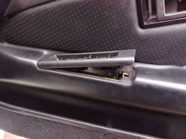 Ahora, con un pequeño destornillador de cabeza plana (o herramienta para tariceria) Deslice unos 10mm (o hasta llegar a la resistencia) en el lado derecho de la placa de control de ventana. Levante suavemente y debe liberar la "ventana de Control de retención Clip". Una vez levantado, como se ve en la foto, la placa se deslice hacia la derecha y retirarse. Desconecte el arnés de cableado y coloque el panel de control en un lugar seguro por ahora.