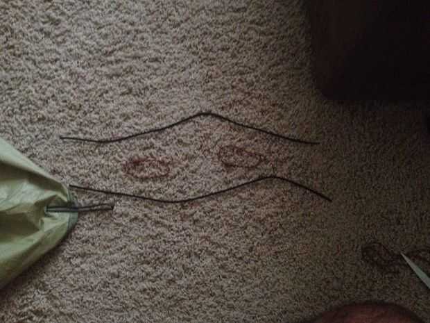 La primera foto muestra el lazo atado al toldo después de que se haya secado completamente así como el material de línea de tipo.