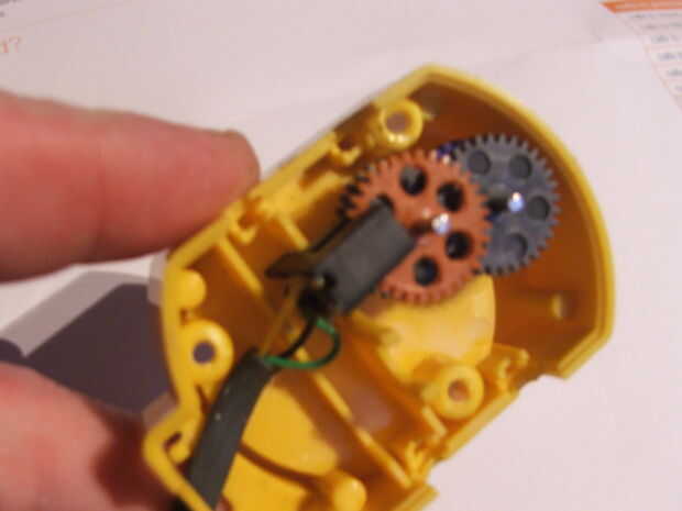 Con los cables conectados, se puede ahora mover claro de donde se encuentra el motor y luego con un poco de pegamento, pega el cable en su posición, necesita estar pegado a un lado, para evitar toparse con el motor.