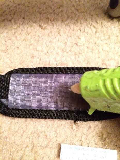 Realizar dos de estas etiquetas, cinta y uno de ellos en la parte inferior de la pistola entre el gatillo y el botón de liberación del cargador. La segunda etiqueta es caliente pegado y pegado a la correa. Asegúrese de que ambas etiquetas son cubiertos completamente con cinta adhesiva, para evitar que resistente al agua.