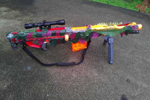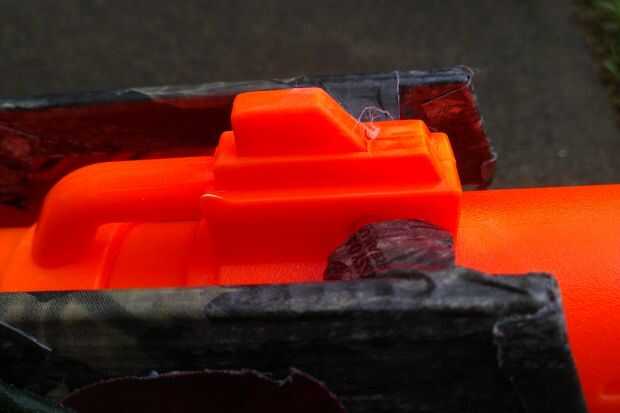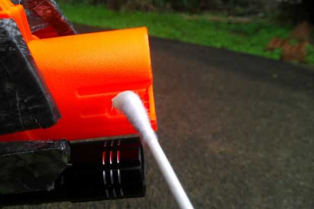 Comience por rociar una pequeña cantidad de pintura en la parte superior de la lata y sumergir una punta de cue en él (para usar como un pincel). A continuación, aplique pintura a las piezas de la pistola como: