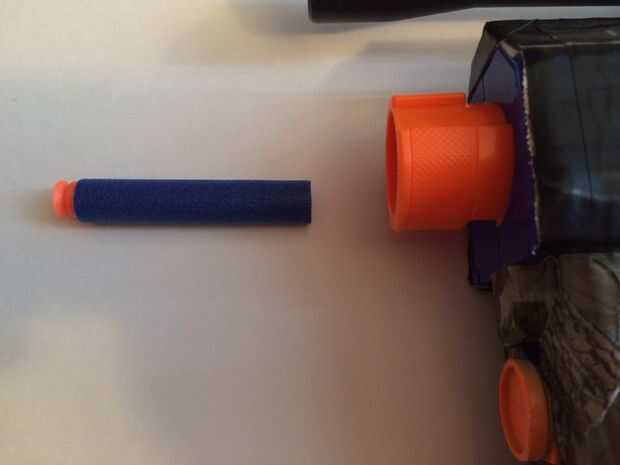 Cuando la pistola está preparada completamente sin su cañón delantero, un dardo puede fácilmente deslizarse dentro del cañón, como con blasters más pequeños como el Firestrike. Una vez que se inserta el dardo, todo lo que queda por hacer es el gatillo.