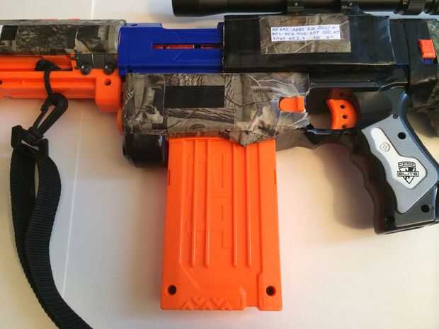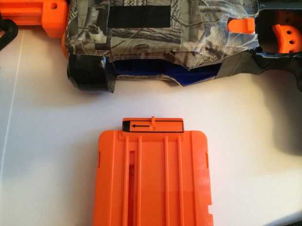 Usando el Retaliator Nerf modificada es muy simple. Siguientes son los pasos necesarios para utilizar el blaster.