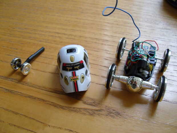 3-luego usé cinta aislante roja para cubrir el cuerpo del coche