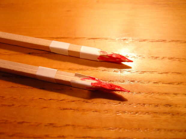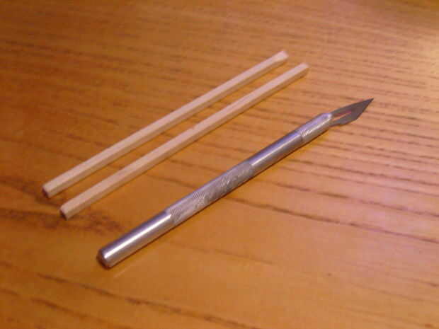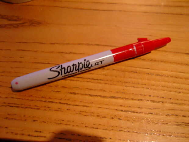 2 - luego usé un rotulador rojo y alguna cinta aislante blanca para agregar color a los palos